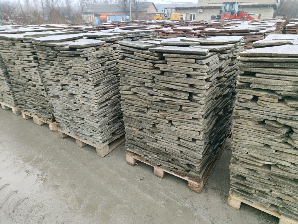 Песчаник серо-зелёный галтованный для облицовки цоколя, отмостки 20-30 мм