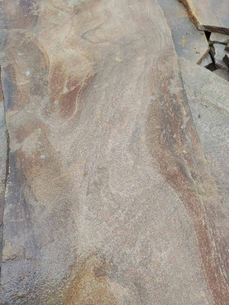 Песчаник "Опавшая листва" имеет оранжево-коричнево-серую окраску.